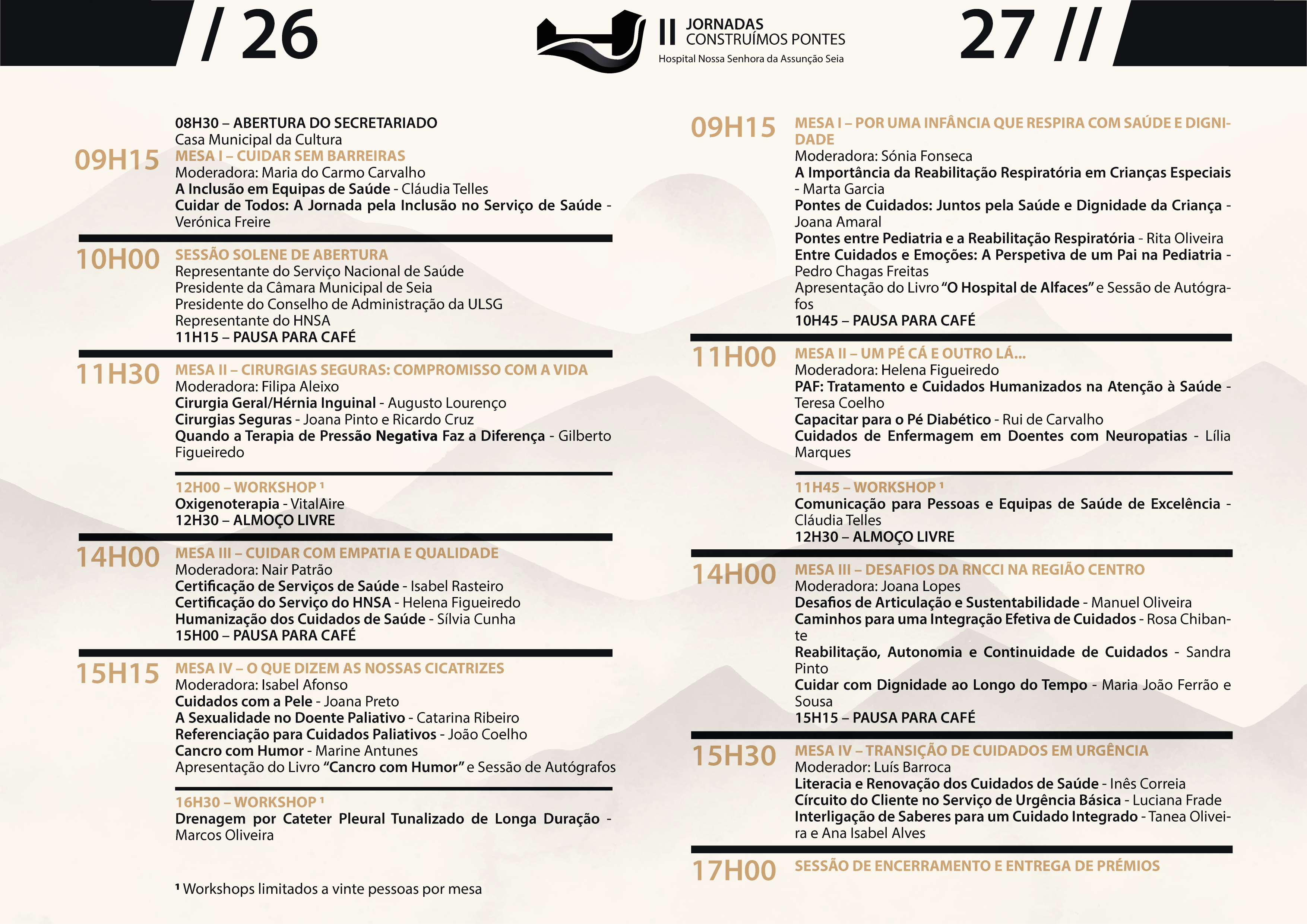 No evento, a decorrer sob o lema "Construímos Pontes", serão abordados temas que "refletem o compromisso com a qualidade, a empatia e a inovação: desde a inclusão e humanização dos cuidados, à segurança cirúrgica, reabilitação respiratória infantil, cuidados paliativos, transição de cuidados e muito mais".