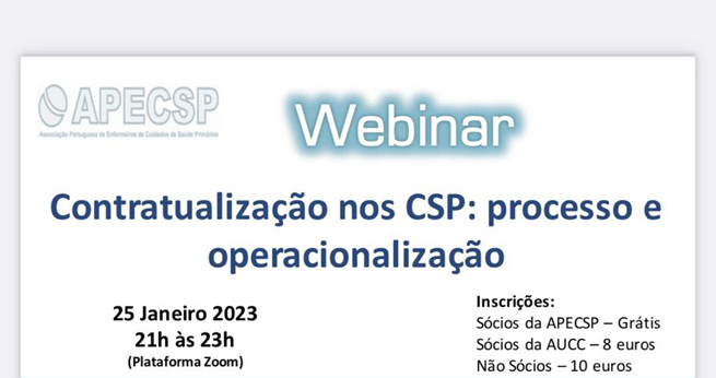 A Associação Portuguesa de Enfermeiros de Cuidados de Saúde Primários (APECSP) vai organizar, dia 25 de janeiro, mais um webinar, desta vez dedicado ao tema da contratualização nos Cuidados de Saúde Primários.