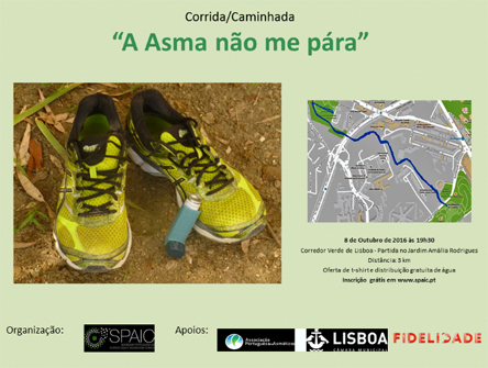 A Sociedade Portuguesa de Alergologia e Imunologia Clínica (SPAIC) vai realizar no próximo sábado, pela primeira vez, a corrida/caminhada "A asma não me pára". A ação, dinamizada por Rita Câmara, vice-presidente da SPAIC, vai decorrer em Lisboa e é aberta à população em geral, sendo promovida pelo Grupo de Interesse "Asma e Alergia no Desporto". A inscrição é gratuita.