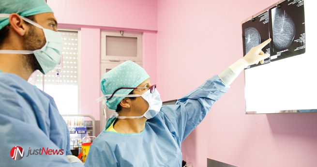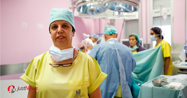 A equipa cirúrgica liderada por Madalena Nogueira, diretora do Serviço de Ginecologia/Obstetrícia do Hospital Distrital de Santarém e coordenadora da Unidade de Senologia, iniciou a primeira quinta-feira de julho precisamente com uma mastectomia radical modificada, uma das duas intervenções que a Just News acompanhou neste dia. A certa altura, entrou na sala o cirurgião plástico Ribeiro de Carvalho, para tratar da reconstrução mamária.