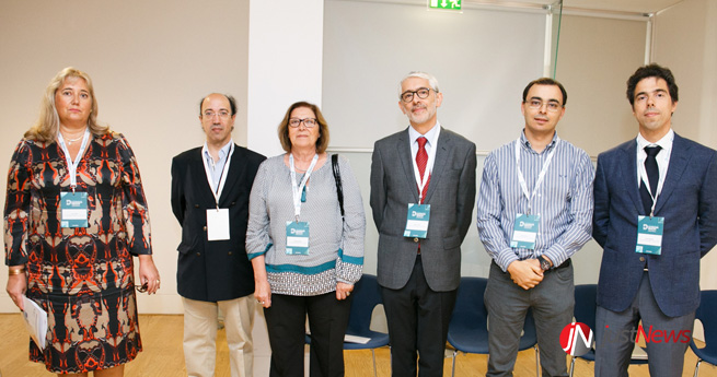 Alguns dos elementos que representaram os hospitais na reunião: Luísa Isabel (CHUC), Vítor Nunes (HFF), Lubélia Pegado (CHUC), Miguel Ghira (HBA), Carlos Pereira (HBA) e César Resende (Hospital da Luz)