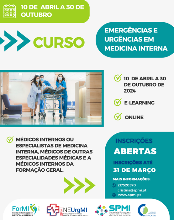 A Sociedade Portuguesa de Medicina Interna vai realizar, através do Núcleo de Estudos de Urgência e do Doente Agudo (NEUrgMI), a 1.ª edição do Curso E-learning de Emergências e Urgências em Medicina Interna.