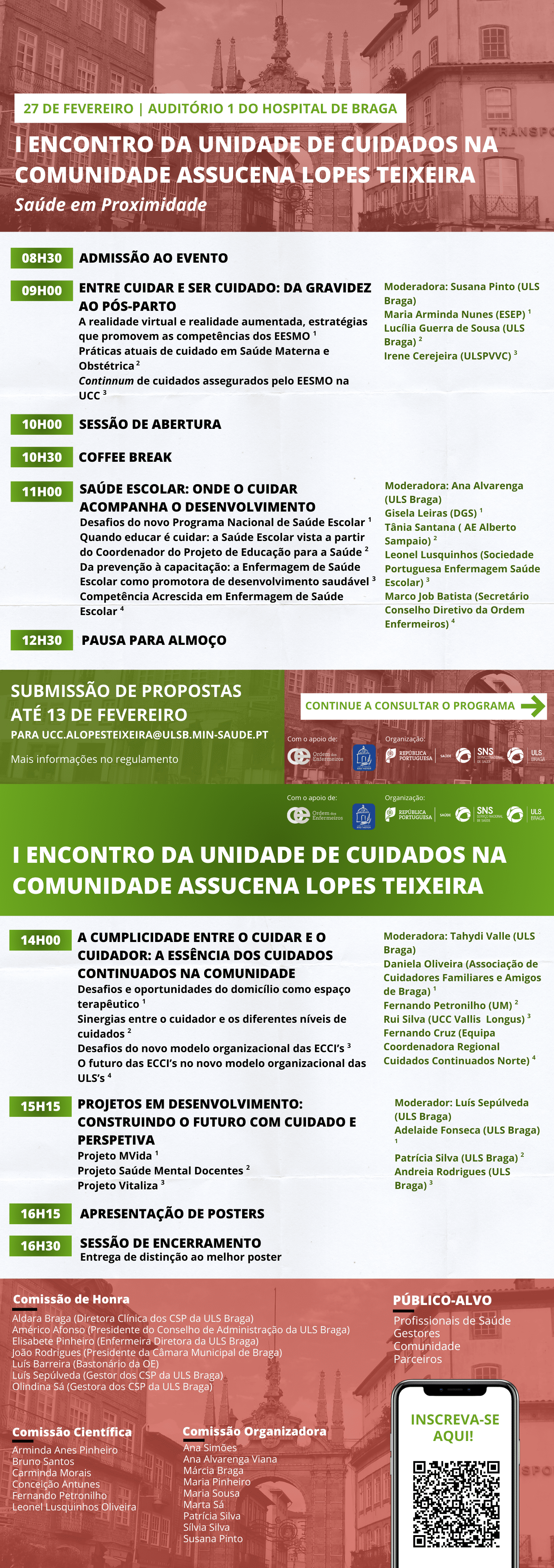 Adianta ainda a Comissão Organizadora que se pretende, igualmente, criar "um espaço privilegiado para a partilha de boas práticas, a divulgação de projetos em desenvolvimento e a reflexão conjunta sobre estratégias de melhoria contínua dos cuidados prestados à população, com especial enfoque nos cuidados de enfermagem na comunidade e nos desafios do contexto atual".