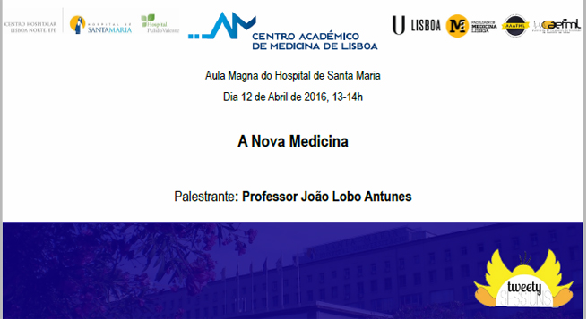 A Faculdade de Medicina da Universidade de Lisboa (FMUL), Centro Hospitalar Lisboa Norte e Instituto de Medicina Molecular vão lançar as "Tweety Sessions 2016" do Centro Académico de Medicina de Lisboa (CAML). Nuno Gaibino, membro da Comissão Organizadora e interno de Medicina Interna, explica que o objetivo é "discutir temas do mundo da ciência, das artes, das humanidades e sociedade que nos façam refletir, interrogar e desacomodar!".