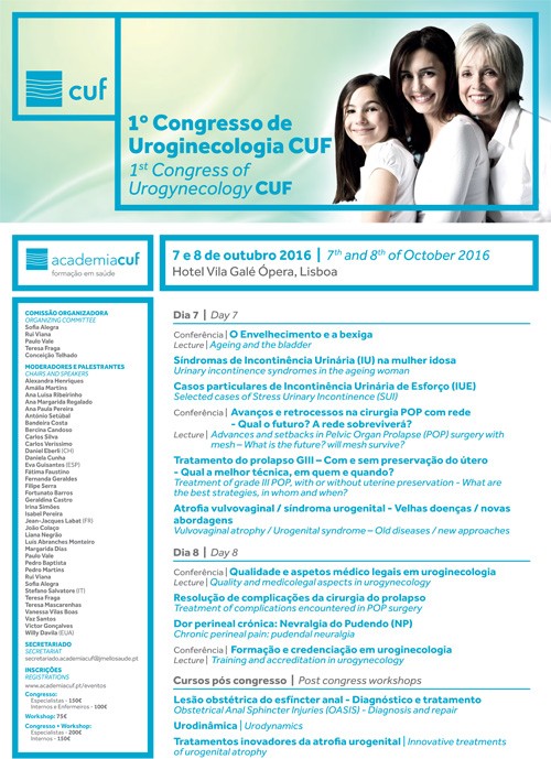 Dirigido aos especialistas em Ginecologia e Urologia, o 1º Congresso de Uroginecologia CUF conta com as intervenções de "vários médicos de renome nacional e internacional", refere a Comissão Organizadora.