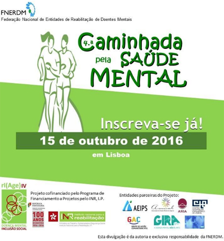 A FNERDM - Federação Nacional de Entidades de Reabilitação de Doentes Mentais vai organizar, dia 15 de outubro a 4.ª Caminhada pela Saúde Mental. A iniciativa decorrerá em Lisboa.