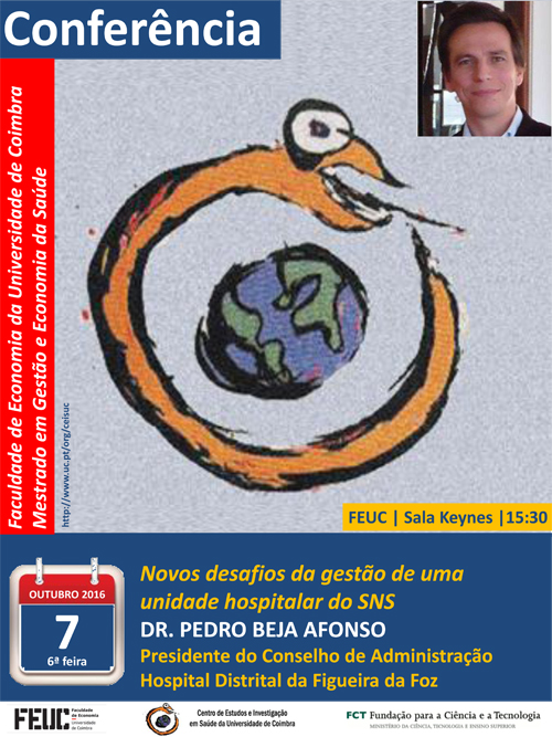 Pedro Beja Afonso, presidente do Conselho de Administração do Hospital Distrital da Figueira da Foz, é o orador convidado da próxima iniciativa promovida pelo Centro de Estudos e Investigação em Saúde da Universidade de Coimbra (CEISUC). A sessão, que decorrerá dia 7 de outubro, é de entrada livre e está aberta a todos os interessados.