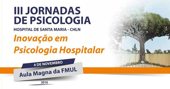 É sob o lema "Inovação em Psicologia Hospitalar" que se realizam, dia 4 de novembro, as III Jornadas de Psicologia do Hospital de Santa Maria - Centro Hospitalar Lisboa Norte (CHLN). O evento, que decorrerá na Aula Magna da Faculdade de Medicina da Universidade de Lisboa (FMUL), conta com o patrocínio científico da Ordem dos Psicólogos.
