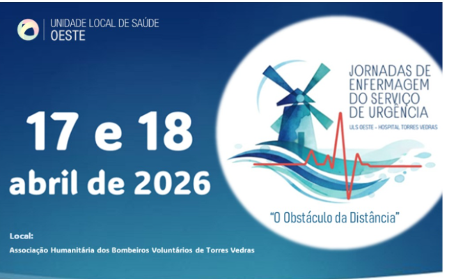 Dias 17 e 18 de abril de 2026 realiza-se, na Associação Humanitária dos Bombeiros Voluntários de Torres vedras, as Jornadas de Enfermagem do Serviço de Urgência da ULS Oeste.