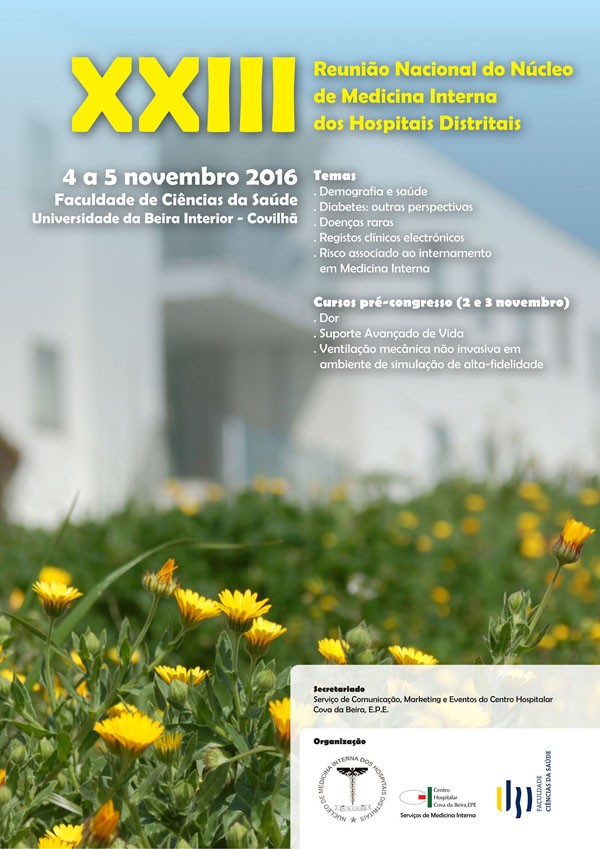 A XXIII Reunião Nacional do Núcleo de Medicina Interna dos Hospitais Distritais vai realizar-se na Covilhã, na Faculdade de Ciências Médicas da Universidade da Beira Interior. O evento está agendado para dias 4 e 5 novembro.