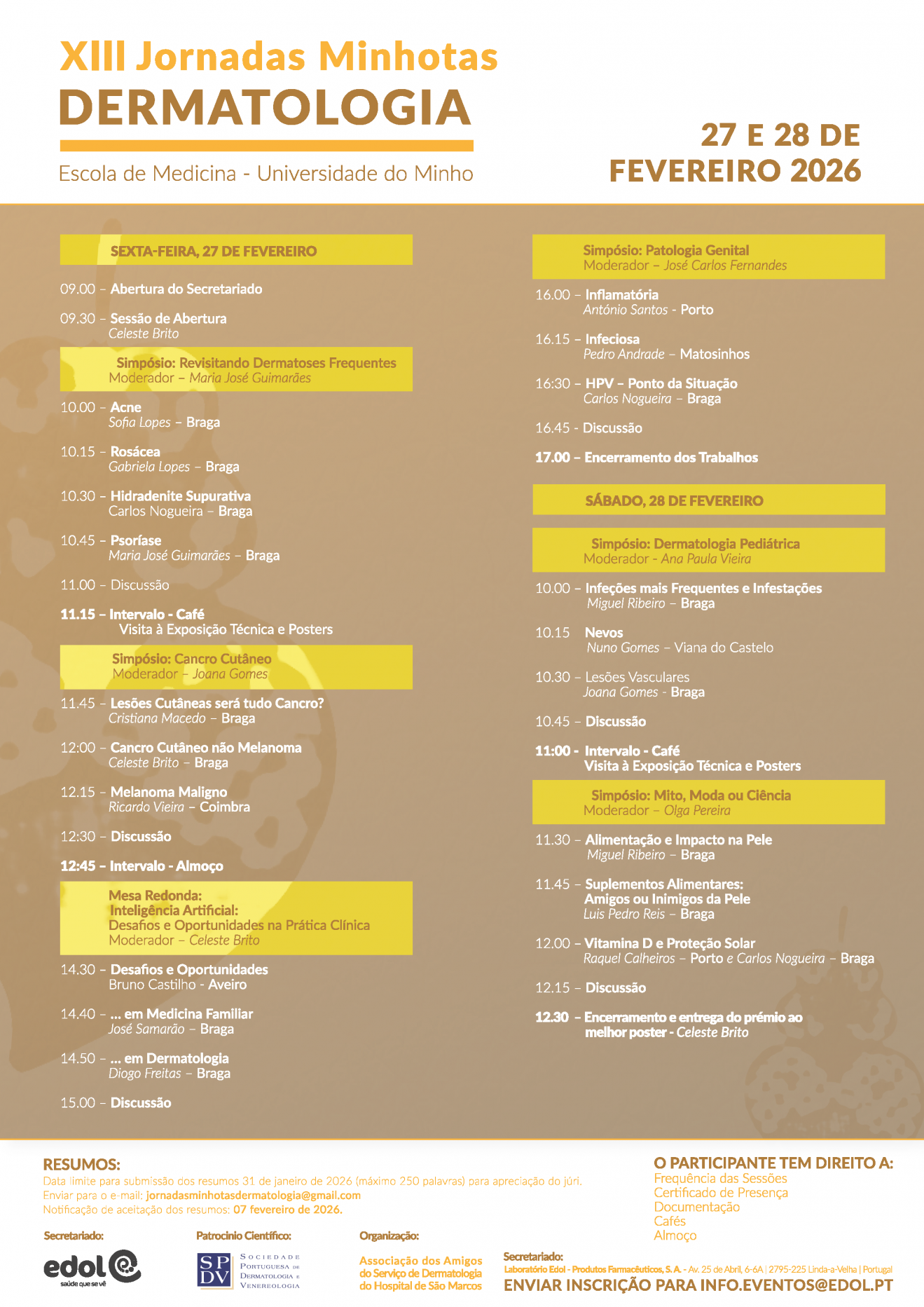 O evento, que decorrerá na Escola de Medicina - Universidade do Minho, conta com o apoio da Sociedade Portuguesa de Dermatologia e Venereologia.