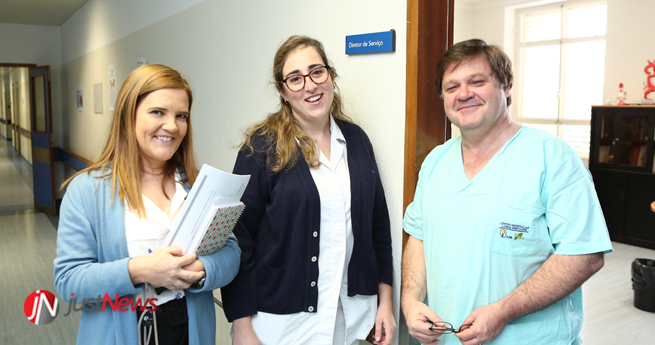 Rute Reis com a enfermeira Ana Almeida e o diretor do Serviço de Cirurgia Vascular, Luís Mendes Pedro