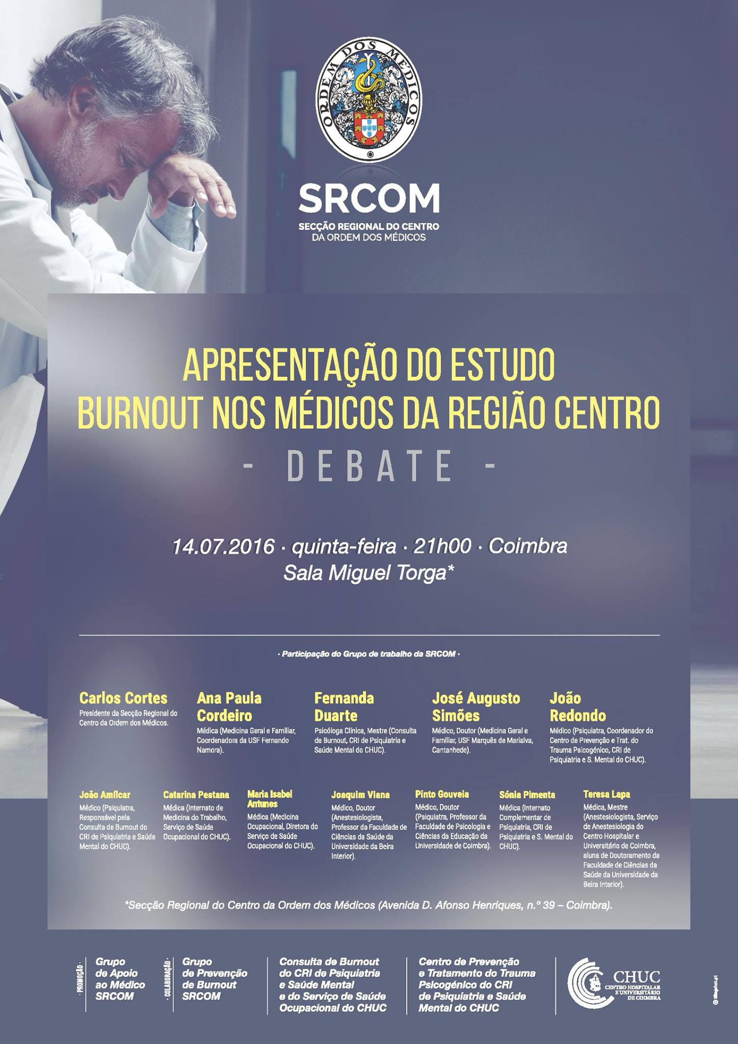 A Sala Miguel Torga da Secção Regional do Centro da Ordem dos Médicos (SRCOM), em Coimbra, acolhe amanhã, quinta-feira, a apresentação do estudo Burnout nos Médicos da Região Centro. Com início às 21h00, o debate que se segue conta com a intervenção de uma dúzia de profissionais.