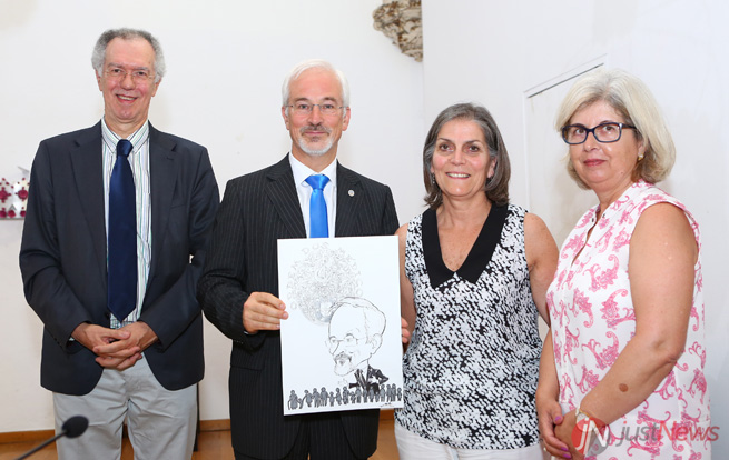 No final da sessão que decorreu no Café Santa Cruz foi entregue ao bastonário da Ordem dos Médicos uma lembrança. A caricatura enaltece o trabalho desenvolvido por José Manuel Silva em prol da saúde dos portugueses.