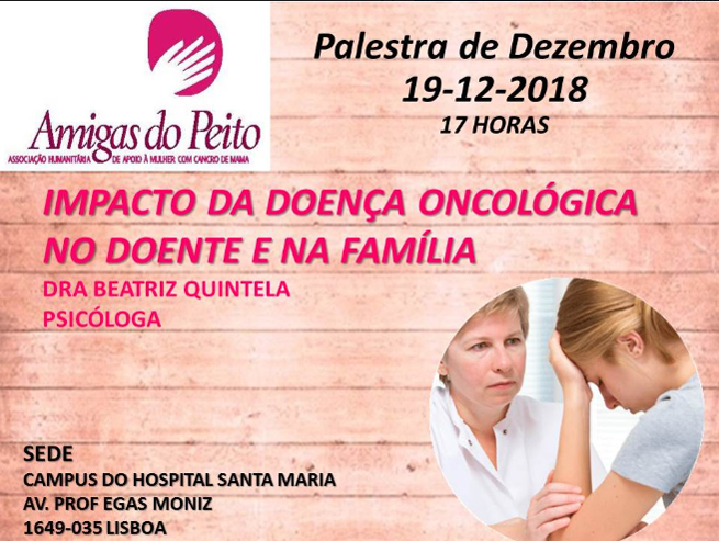 A Associação Humanitária de Apoio à Mulher com Cancro de Mama - Amigas do Peito vai realizar, esta quarta-feira, uma sessão de esclarecimento intitulada: "Impacto da doença oncológica no doente e na família".
