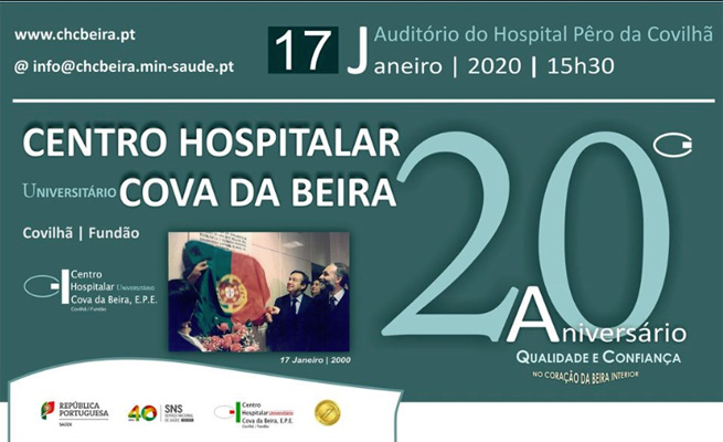 Na próxima sexta-feira, 17 de janeiro, o Centro Hospitalar Universitário Cova da Beira (CHUCB) comemora o seu 20.º aniversário com uma iniciativa que decorrera no Auditório do Hospital Pêro da Covilhã.