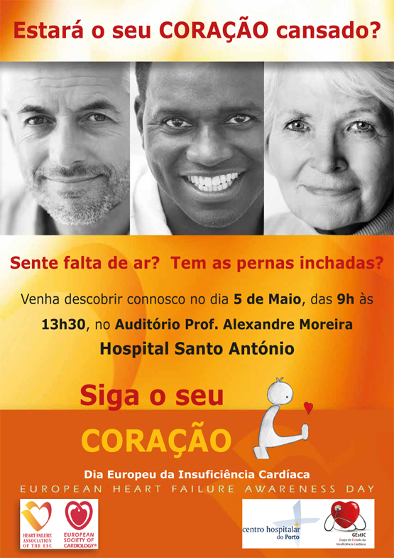 Novamente sob o lema "Siga o seu coração", a iniciativa decorrerá dia 5 de maio, no Auditório Prof. Doutor Alexandre Moreira do Hospital Santo António, "de acordo com as recomendações da Associação de Insuficiência Cardíaca da Sociedade Europeia de Cardiologia".