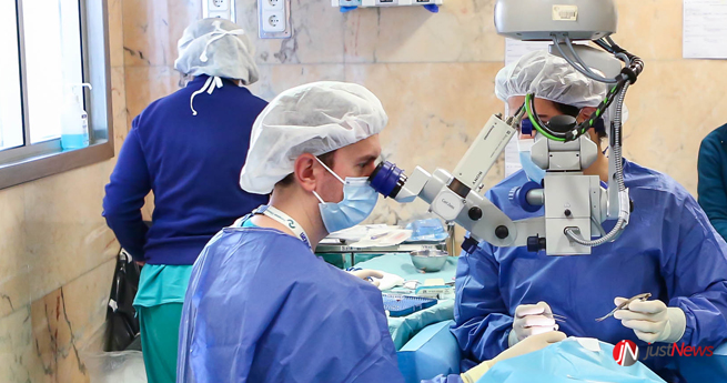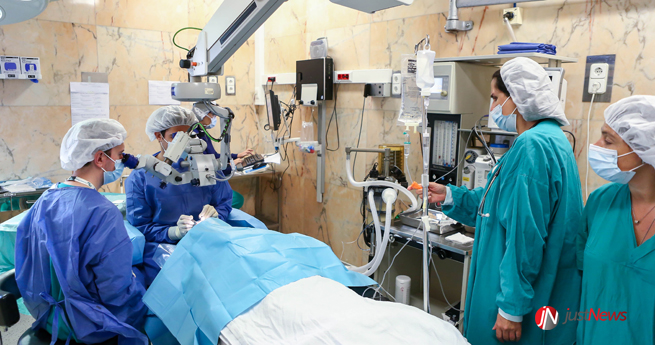 Ao longo de cerca de duas horas, os doentes são submetidos a cirurgia, com uma equipa composta por dois oftalmologistas, um anestesiologista e dois enfermeiros.