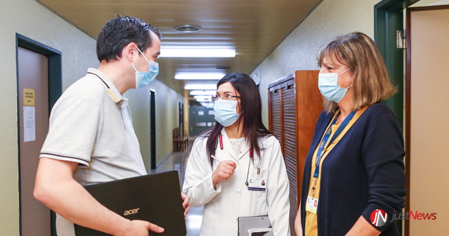 Áurea Andrade, enfermeira diretora do CHUC (ao centro), com João Filipe, assessor da Direção de Enfermagem, e Elisa Melo