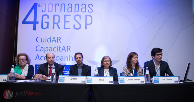 Isabel Saraiva dirigia-se a todos os que estavam presentes na sala, incluindo quem partilhava consigo a mesa de encerramento – Rui Costa, coordenador do GRESP, Elisa Pedro, presidente da Sociedade Portuguesa de Alergologia e Imunologia Clínica (SPAIC), Miguel Pereira, da APMGF, e ainda Cláudia Vicente e Rui Oliveira, do GRESP.