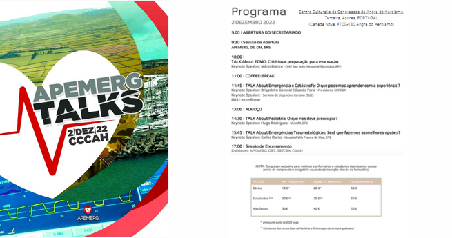 No entanto, a "talks" conta ainda com a intervenção de outros oradores, que abordarão temas relacionados com o ECMO, e os respetivos "critérios e preparação para evacuação", a Pediatria e as emergências traumatológicas.