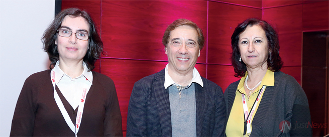 Manuel Belo Costa com Ana Teresa Timóteo, coordenadora do Grupo de Estudo de Cuidados Intensivos Cardíacos (GECIC), e Cândida Fonseca, coordenadora do Grupo de Estudo de Insuficiência Cardíaca (GEIC), durante uma reunião conjunta dos três núcleos da Sociedade Portuguesa de Cardiologia, que decorreu este ano.