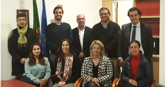 Sócios fundadores da AEENSP no momento da escritura: À frente - Daniela Carvalho, Maria Luísa Teixeira, (notária) e Margarida Bandarra
