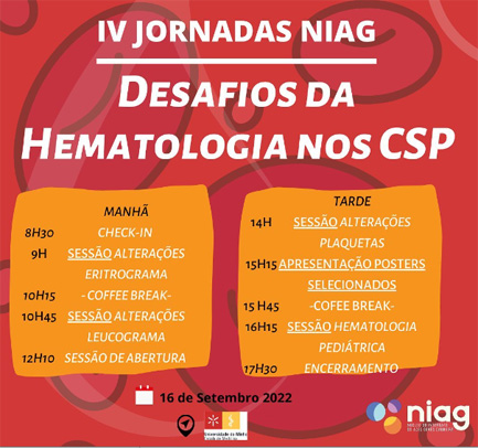 O Núcleo do Internato do ACES Gerês/Cabreira (NIAG) vai realizar, dia 16 de setembro de 2022, as suas IV Jornadas. "Os desafios da Hematologia nos cuidados de saúde primários"é o tema central do evento, que decorrerá na Escola de Medicina da Universidade do Minho.