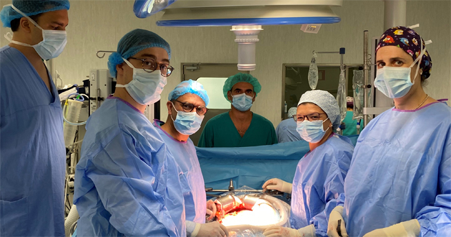 A cirurgia número 2.500 foi realizada por uma equipa constituída por cinco cirurgiões (João Santos Coelho, Raquel Mega, Luís Bicho e Sílvia Silva, além do próprio Hugo Pinto Marques), um anestesista (Filipe Pissarra) e três enfermeiras (Helena Figueiredo, Marise Teixeira e Cristina Rivera). “Estes são, no fundo, apenas a ´linha da frente` de uma vastíssima equipa cujo trabalho começa na referenciação do dador”, faz questão de sublinhar o diretor do Serviço de Cirurgia Geral do CHULC.