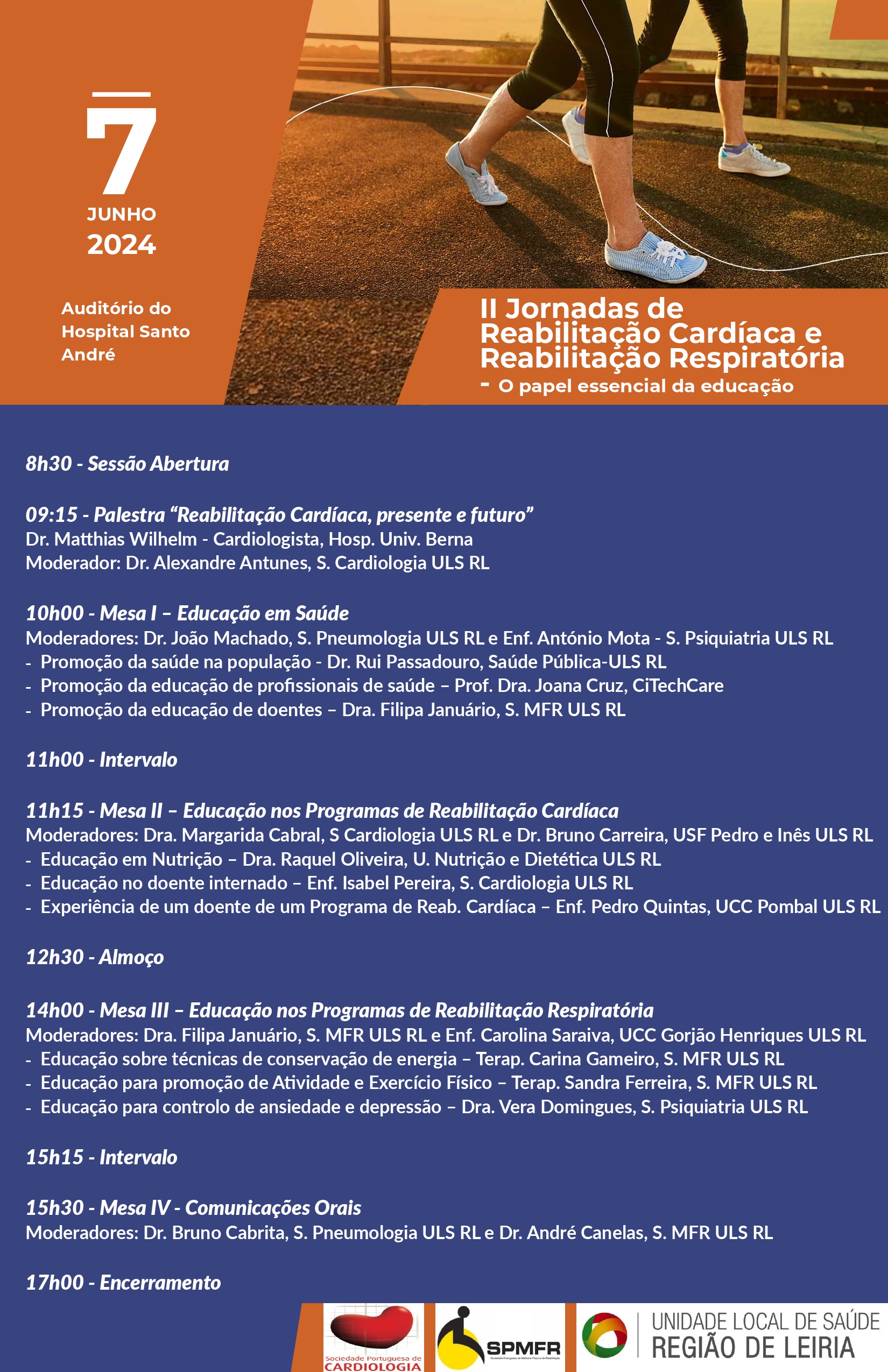 O evento, que decorrerá no auditório do Hospital de Santo André (HSA), em Leiria, dia 7 de junho, é organizado em conjunto pelos Serviços de Cardiologia, de Pneumologia e de Medicina Física e Reabilitação. O motivo para esta conjugação de esforços é explicada pela fisiatra Filipa Januário, da comissão organizadora do evento: