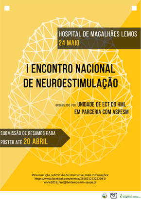 Organizado pela Unidade de Eletroconvulsivoterapia do Hospital de Magalhães Lemos, em colaboração com a Sociedade Portuguesa de Enfermagem de Saúde Mental, o I Encontro Nacional de Neuroestimulação realiza-se dia 24 de maio de 2019.