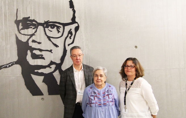Paula Coutinho com Jorge Sequeiros e Milena Paneque, junto à imagem de Corino de Andrade (foto: i3S).