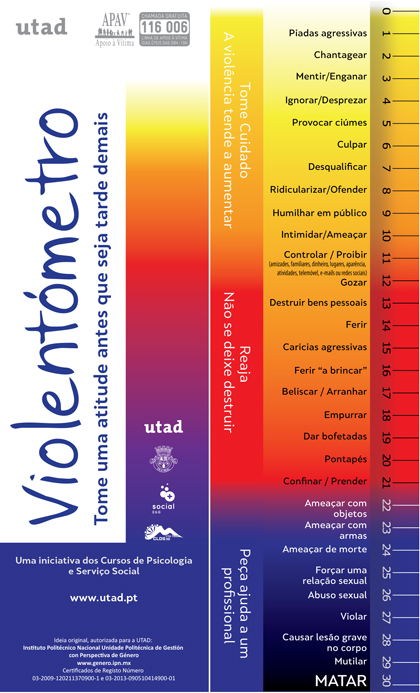 A UTAD adianta que o Violentómetro foi adaptado de um modelo desenvolvido por uma universidade mexicana, e consiste num material gráfico e didático em forma de régua, no qual se visualizam manifestações implícitas e explicitas de violência, algumas delas tornadas naturais no quotidiano e na sociedade.