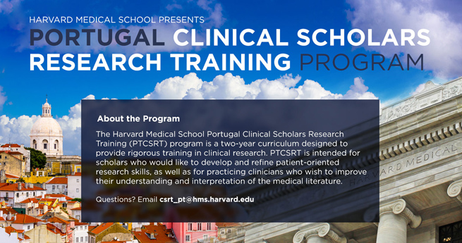 Esta sexta-feira, 15 de setembro, realiza-se, na Faculdade de Medicina da Universidade de Coimbra (FMUC), uma sessão de informação sobre o Portugal Clinical Scholars Research Training (PTCSRT), um programa da Harvard Medical School, que vai arrancar em fevereiro de 2018.
