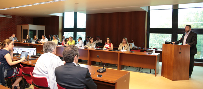 O painel dedicado à divulgação da experiência de participação em projetos do Horizonte 2020 contou com a presença de Celeste Barreto, diretora do Serviço de Pediatria Médica do Centro Hospitalar de Lisboa Norte, João Forjaz Lacerda, coordenador do Núcleo de Cooperação Internacional da Faculdade de Medicina da Universidade de Lisboa, e José António Pereira da Silva, diretor do Serviço de Reumatologia do Centro Hospitalar Universitário de Coimbra.