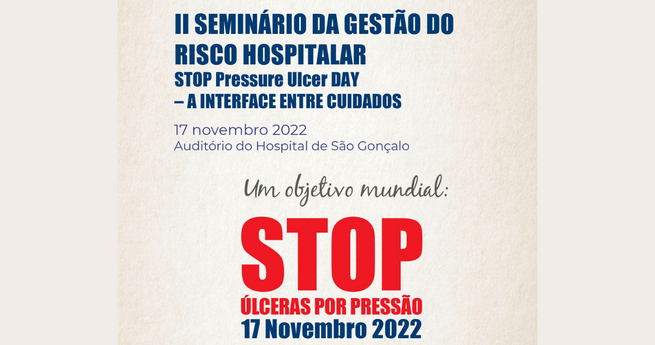Dia 17 de novembro assinala-se o "Dia mundial STOP Pressure Ulcer Day" e, por isso, o Gabinete de Gestão de Risco Hospitalar do Centro Hospitalar do Tâmega e Sousa (CHTS) irá organizar nesse mesmo dia o II Seminário de Gestão de Risco Hospitalar, que tem como temática "STOP Pressure Ulser SAY - A interface entre cuidados".