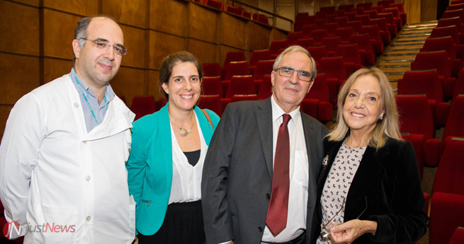 Além dos muitos colegas, amigos e familiares presentes na lição de Jubilação, na mesa estiveram Fausto Pinto, diretor da FMUL, Carlos Martins, presidente do Conselho de Administração do CHLN, Melo Cristino, presidente do Conselho Científico da FMUL, e Calhaz Jorge, o atual diretor do Departamento de Obstetrícia, Ginecologia e Medicina da Reprodução do CHLN, acumulando com a Direção do Serviço de Ginecologia. %20e%20a%20esposa%20(Joaquina%20Tavares%202016.jpg)