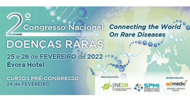 "Connecting the World On Rare Diseases" é o lema do 2.º Congresso Nacional de Doenças Raras, que decorrerá em Évora. O evento é organizado pelo Núcleo de Estudos de Doenças Raras da Sociedade Portuguesa de Medicina Interna (SPMI).