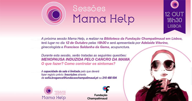 A associação Mama Help vai promover, dia 12 de outubro, um debate sobre como controlar os sintomas da menopausa induzida pelo cancro da mama. A sessão de esclarecimento, que decorrerá na Biblioteca da Fundação Champalimaud, é de entrada livre e aberta a todos os interessados, estando o início marcado para as 18h30.