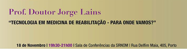 Jorge Laíns, fisiatra e presidente da Sociedade Internacional de Medicina Física e de Reabilitação (ISPRM) vai amanhã, sexta-feira, estar presente em mais um convívio científico promovido pela CMEP - Clínica Médica do Exercício do Porto. A sua palestra, intitulada "Tecnologia em Medicina de Reabilitação - Para onde vamos?", decorrerá na Secção Regional do Norte da Ordem dos Médicos, presidida por Miguel Guimarães.