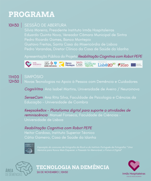 O evento inclui a apresentação pública do projeto "Reabilitação Cognitiva com Robot PEPE", que visa a "promoção do envelhecimento ativo e o combate ao isolamento social através de intervenções de reabilitação cognitiva com recurso à robótica na população idosa". Serão ainda partilhadas experiências relacionadas com vários outros projetos.