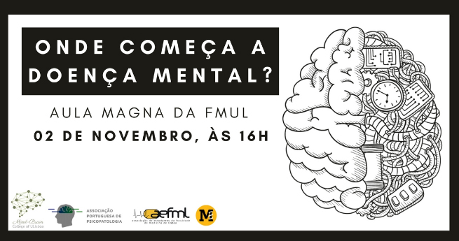 Agendada para esta quinta-feira, 2 de novembro, a conferência "Onde começa a doença mental?" realiza-se na Aula Magna da Faculdade de Medicina da Universidade de Lisboa (FMUL), estando o seu início marcado para as 16h00.