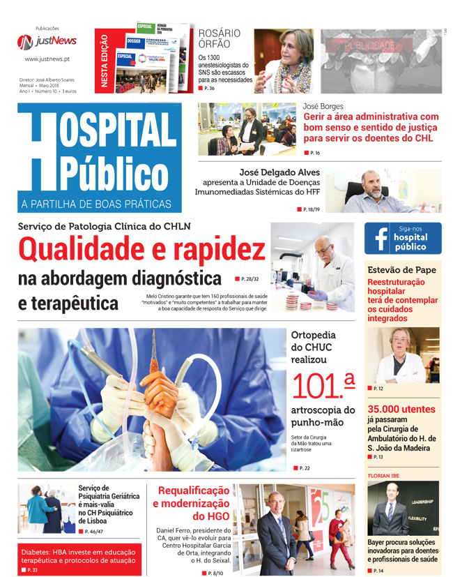 Distribuído, de forma transversal, em cada unidade hospitalar do SNS, o jornal Hospital Público promove a partilha de boas práticas, processos de melhoria contínua, projetos inovadores e iniciativas implementadas por profissionais dos hospitais públicos.