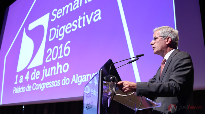 Além de José Cotter, na sessão de abertura da Semana Digestiva estiveram presentes António Pereira Dias, presidente da Sociedade Portuguesa de Endoscopia Digestiva (SPED), Luís Tomé, presidente da Comissão Organizadora da Semana Digestiva 2016, Manuel Delgado, secretário de Estado da Saúde, Isabel Pedroto, presidente da Associação Portuguesa para o Estudo do Fígado (APEF).