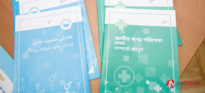A própria sinalética da USF está em Português e Inglês e, no caso da Saúde Materna e Infantil, os folhetos da introdução de alimentos estão traduzidos para espanhol, inglês, francês, italiano, nepali, bengali, hindi, chinês e russo e os do Planeamento Familiar incluem imagens e tradução para bengali, nepali, urdu, chinês e inglês.