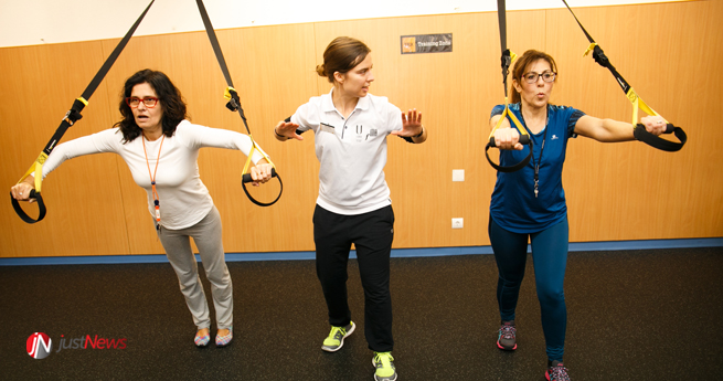 Machado Rodrigues assume as funções de diretor clínico e Helena Santa-Clara é a diretora do programa da componente de exercício físico, que explica à Just News como tudo funciona. Fomos também recebidos por Rita Pinto, doutoranda da Faculdade de Motricidade Humana (FMH) e responsável pela sala de exercício, e Vitor Angarten, doutorando daquela Faculdade.