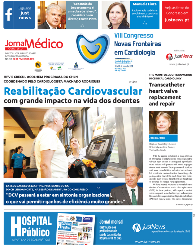 A reportagem completa sobre o Programa de Reabilitação Cardiovascular do CHLN - HPV, onde são também entrevistados profissionais de Cardiopneumologia, Enfermagem e Fisioterapia, foi publicada no Jornal do VIII Congresso Novas Fronteiras em Cardiologia, distribuído na reunião, que se realizou há dias.