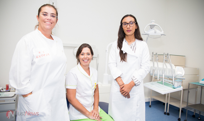 Equipa de Medicina Dentária da USF Monte da Caparica: Andrea Santos (higienista oral), Vera Caldeira (assistente) e Ana Filipa Neto (médica dentista).