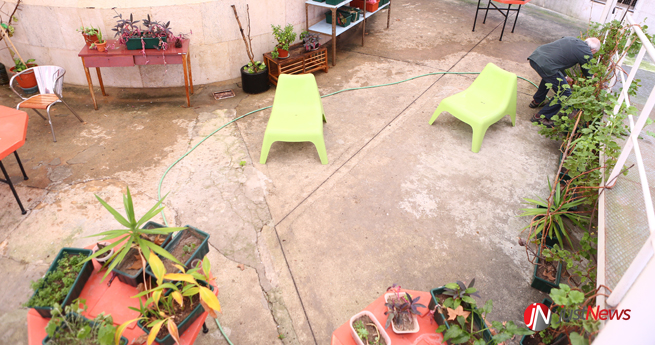 O Sr. Joaquim (nome fictício) vai retirando as folhas secas dos vasos das flores do átrio contíguo às instalações da Unidade de Diagnóstico e Intervenção (UDI) do Serviço de Psiquiatria Geriátrica do Centro Hospitalar Psiquiátrico de Lisboa (CHPL). Esta é uma das intervenções terapêuticas dos doentes que são acompanhados na UDI, onde se estimula a autonomia dos que ali se encontram, na maioria das situações, sofrendo de demência.