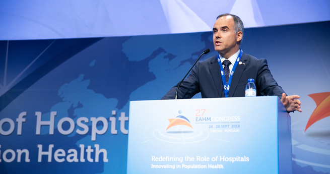 Dos vários momentos do Congresso, Alexandre Lourenço destaca os EAHM Innovation Awards 2019, uma iniciativa a que presidiu e que tem como intuito “promover a inovação nos hospitais e disseminar as melhores práticas”.